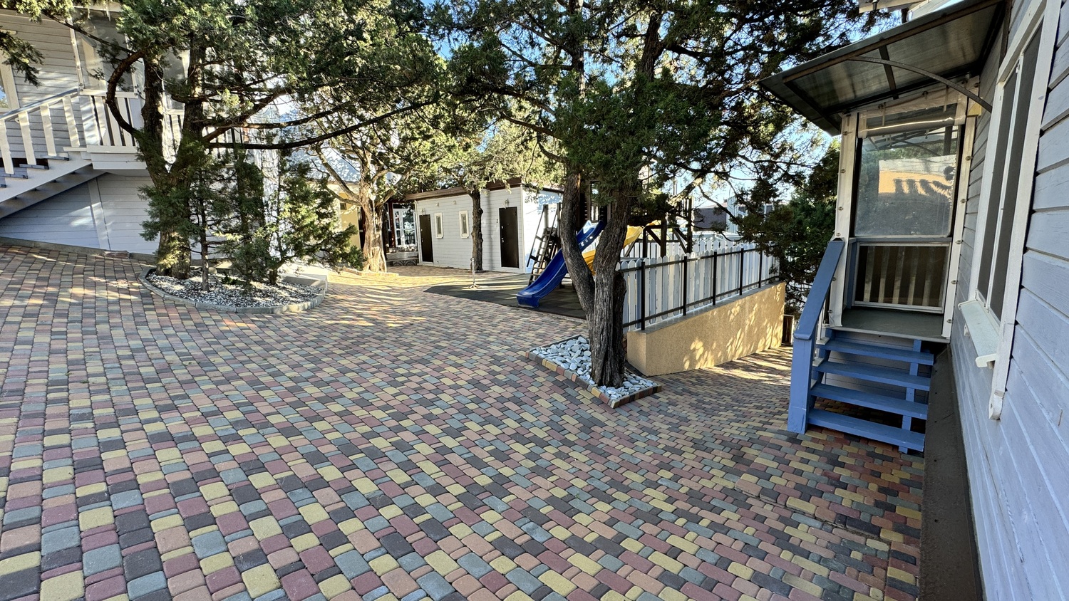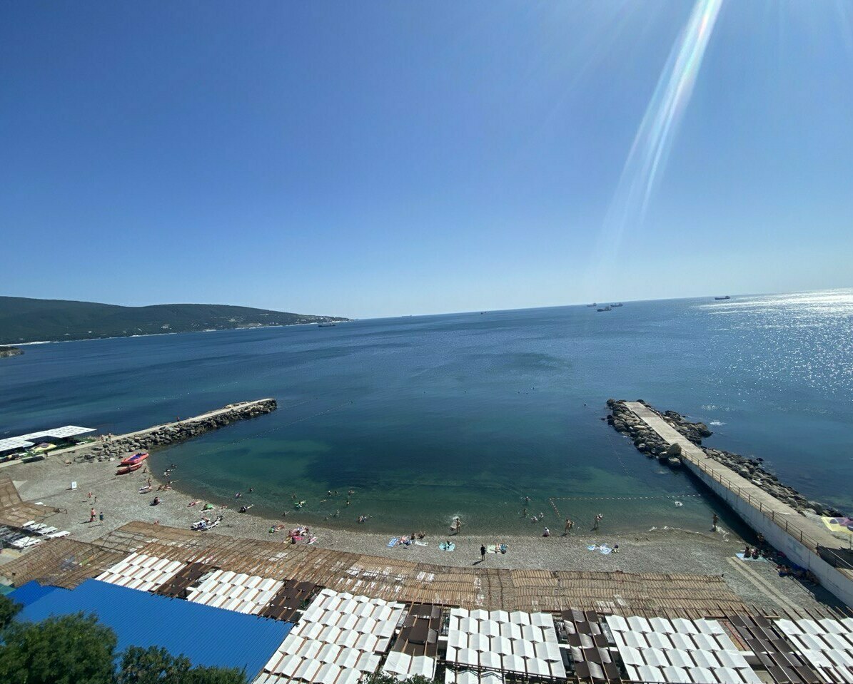 Всего 450 метров до чистого галечного пляжа в ведении Государственного Пансионата. Прогулка займёт 10 минут по безопасному надземному переходу — идеально для отдыха с детьми.