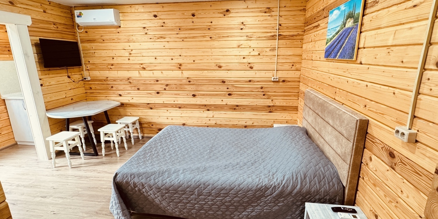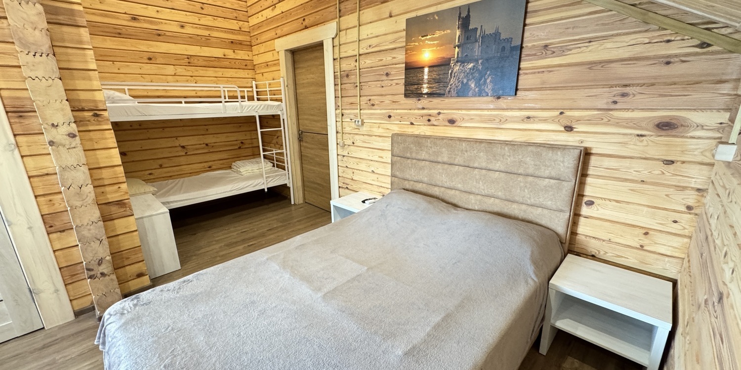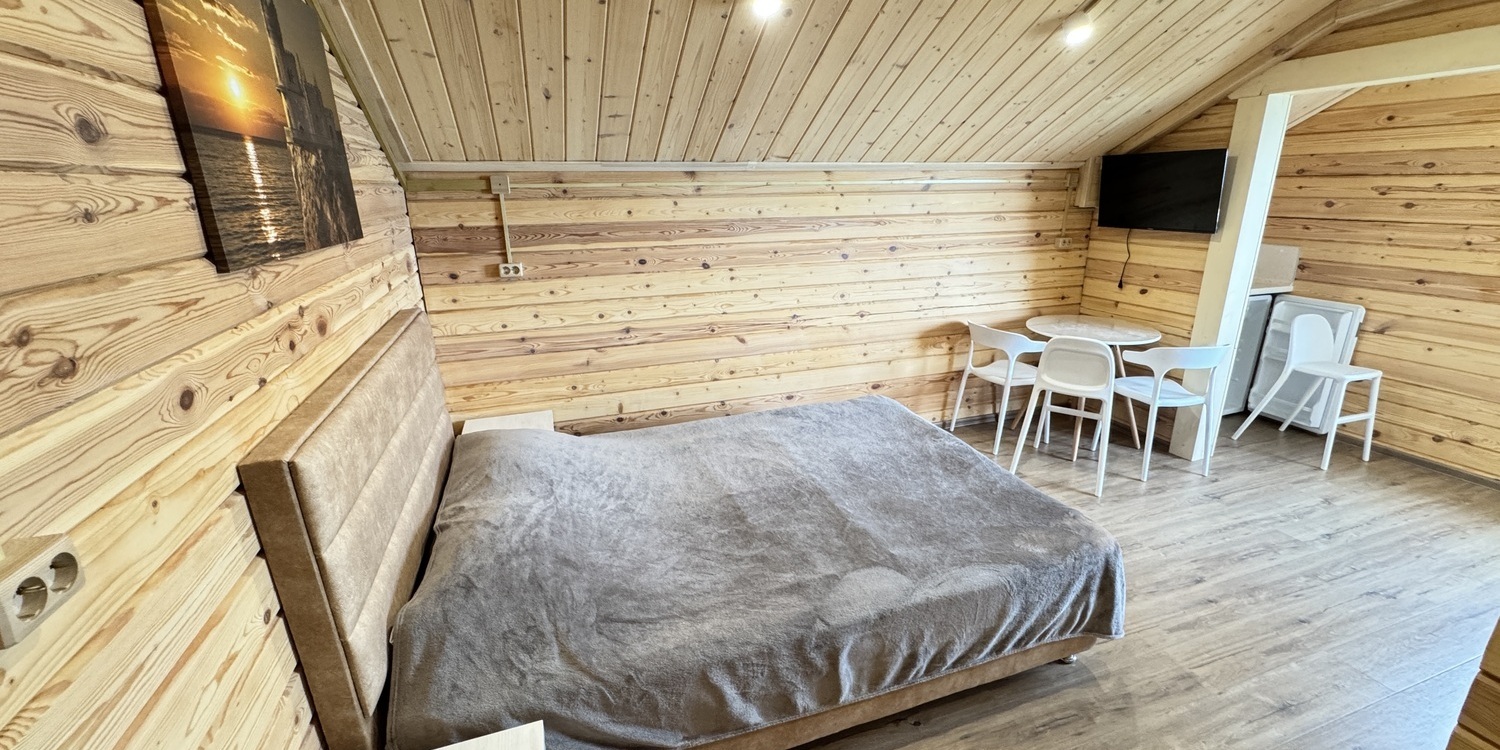 Потрясающие номера Люкс с замечательным видом на море и кроны можжевельника. В номерах предусмотрены все удобства, в том числе: сплит-система, холодильник, чайник, тарелки,кружки. В номерах одна большая двуспальная кровать KING SIZE и ДВУХЪЯРУСНАЯ кровать с двумя спальными местами длиной 200см. и шириной 80 см. В номерах комфортно разместиться дружная семья до четырех человек. Из окон Вам откроется красота Цемесской бухты, Новороссийск, огни ночных кораблей и лунная дорожка. Тишина , лечебный морской воздух с фитонцидами можжевельника в подарок!!!