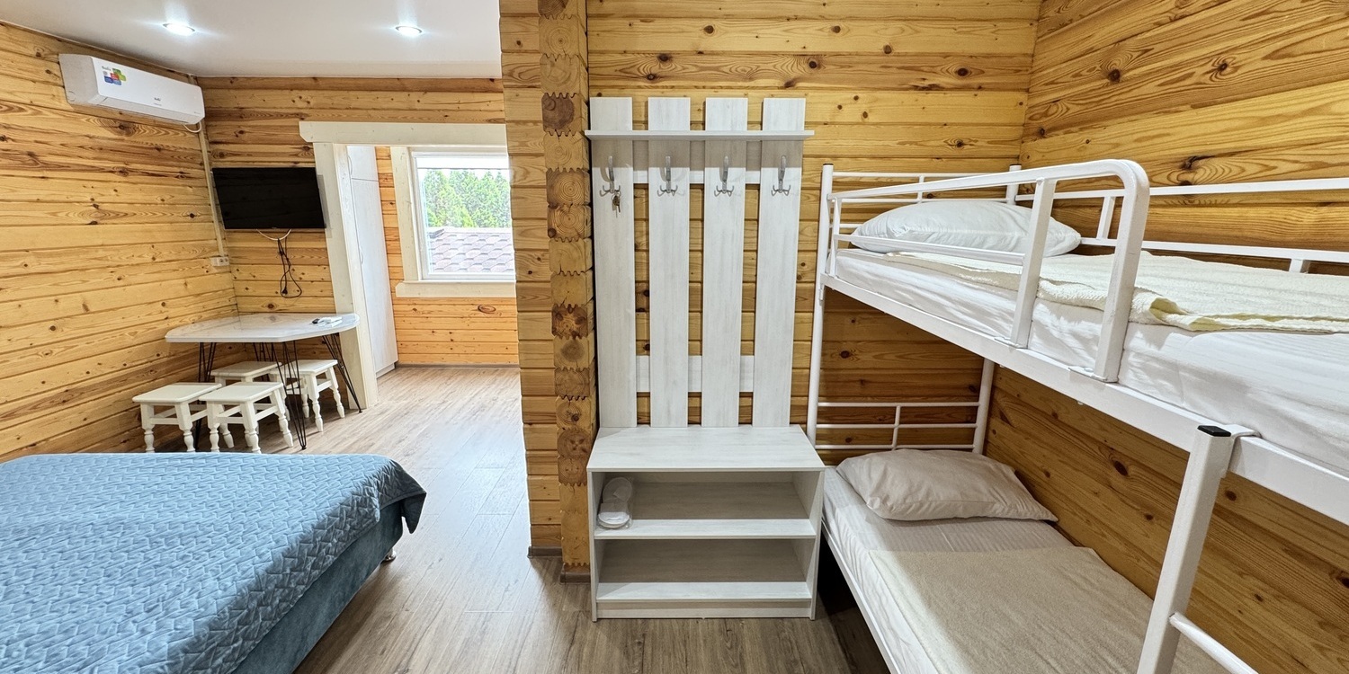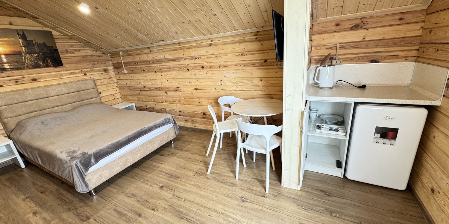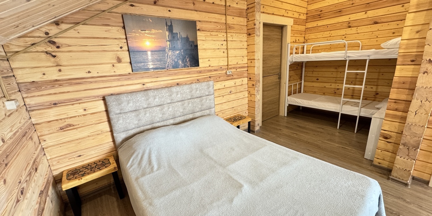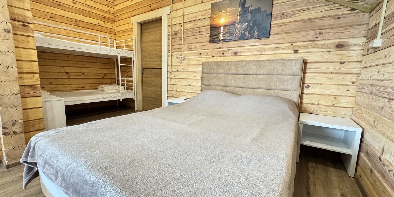 Потрясающие номера Люкс с замечательным видом на море и кроны можжевельника. В номерах предусмотрены все удобства, в том числе: сплит-система, холодильник, чайник, тарелки,кружки. В номерах одна большая двуспальная кровать KING SIZE и ДВУХЪЯРУСНАЯ кровать с двумя спальными местами длиной 200см. и шириной 80 см. В номерах комфортно разместиться дружная семья до четырех человек. Из окон Вам откроется красота Цемесской бухты, Новороссийск, огни ночных кораблей и лунная дорожка. Тишина , лечебный морской воздух с фитонцидами можжевельника в подарок!!!