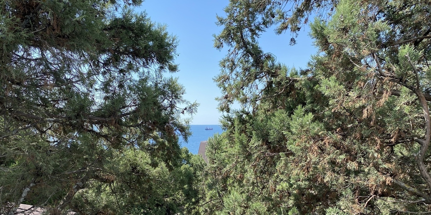 Номера 1-ого этажа с частичным видом на море и кроны можжевельников №7 и 8